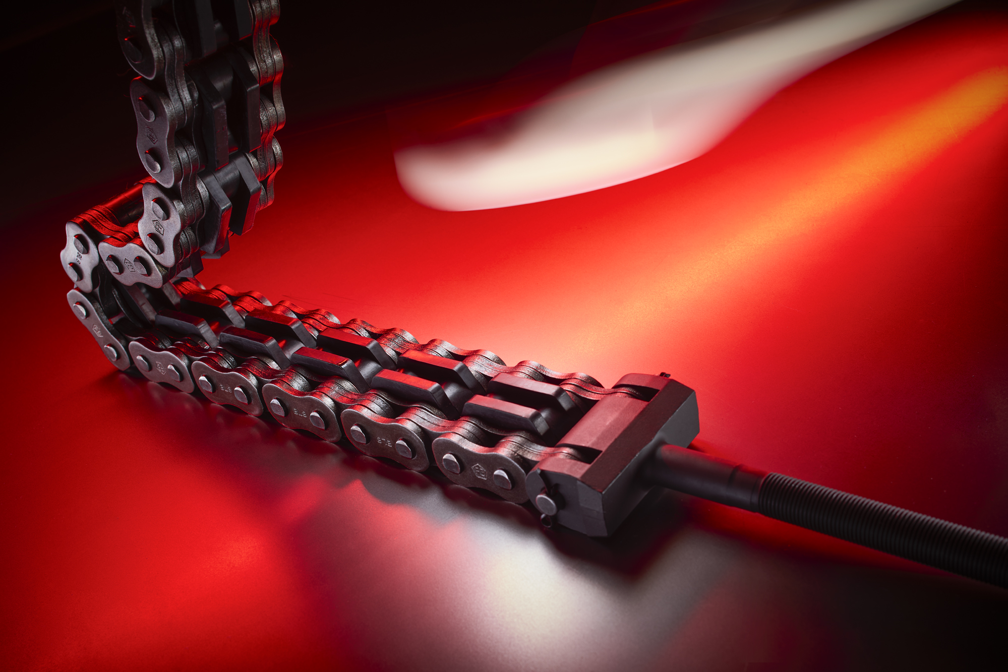 Wenn sich diese Rückstände mit Staub und Schmutz verbinden, kann dies das nachfließen von Schmiermittel verhindern und somit die Langlebigkeit der Kette beeinträchtigen. Schmutz und Ablagerungen können mit der Kettenreinigungsbürste entfernt werden, damit bei erneuter Schmierung das Schmiermittel zwischen Laschen und Bolzen gelangen kann.