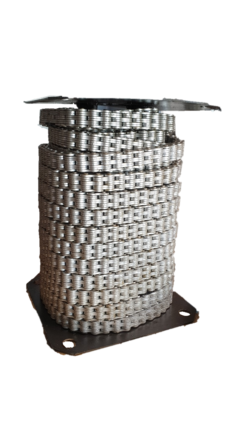 Flyerkette DIN ISO4347:2018 - 01 , Typ BL666 / LH1266, Teilung 19,05 mm, Bolzendurchmesser 7,93 mm max., Laschenkombination 6x6, Laschenhöhe 18 mm max., Laschenstärke 3,3 mm max., Bolzenlänge 44 mm, Bruchkraft nach DIN 146,8 kN, getestete FB-Bruchkraft 205 kN, Kette auf 35 - 40% der Bruchkraft vorgereckt, inkl. SuperShield-Beschichtung